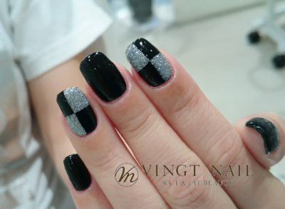 ブラック&シルバーでオシャレネイルに!