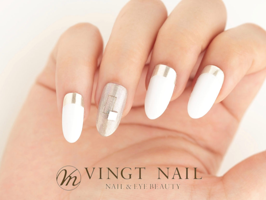 夏に人気カラーホワイトベースに ミラーネイルをプラスオン