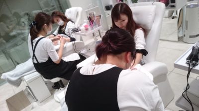営業後に尾花さん、佐藤さんの技術チェック中💅