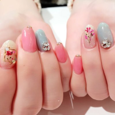 人気の小花ネイルでガーリーに