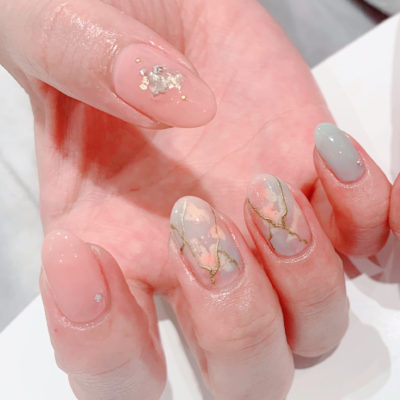 ターコイズとコーラルカラーで透け感たっぷり初夏ネイル♪