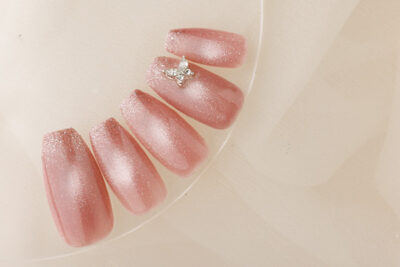 マグネットネイルは、鉄粉入りのジェルに磁石を近づけることで、光が奥から湧き上がるような幻想的な輝きを生み出せるデザインです。
