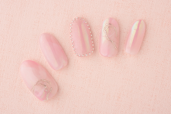 コメント さりげないマーブルとオーロラミラーが輝くデザイン。ぐるりと囲ったパールのようなスタッズがポイント