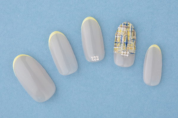 コメント 春が待ち遠しくなるイエロー×ツイードは、グレーを使って個性的に