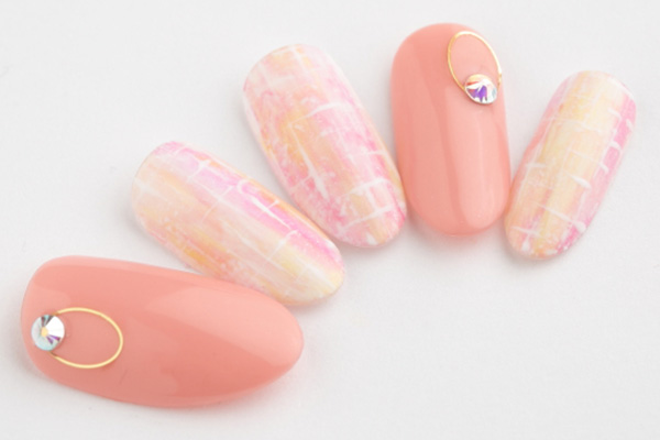 コメント 明るいカラーのマーブルアートと、春に大人気のコーラルピンクがポイントです。