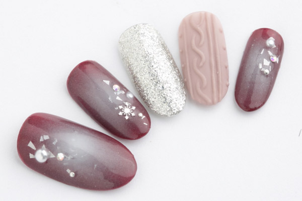 可愛らしいニットネイルと、新しく導入したエアブラシを使ったふんわりとしたチークネイルで冬っぽさを表現しました!